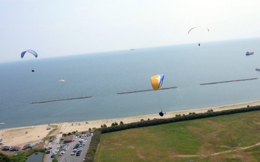 8月15日 雨の後は飛べる のジンクス道理 小赤壁3機福泊に→渡れる風に 其のうちの一機は 小赤壁→ 福泊→ 小赤壁→と3回位・再々往復してた、 福泊は最高の風で 一時は9機 群舞して 皆さん 飛び疲れ。